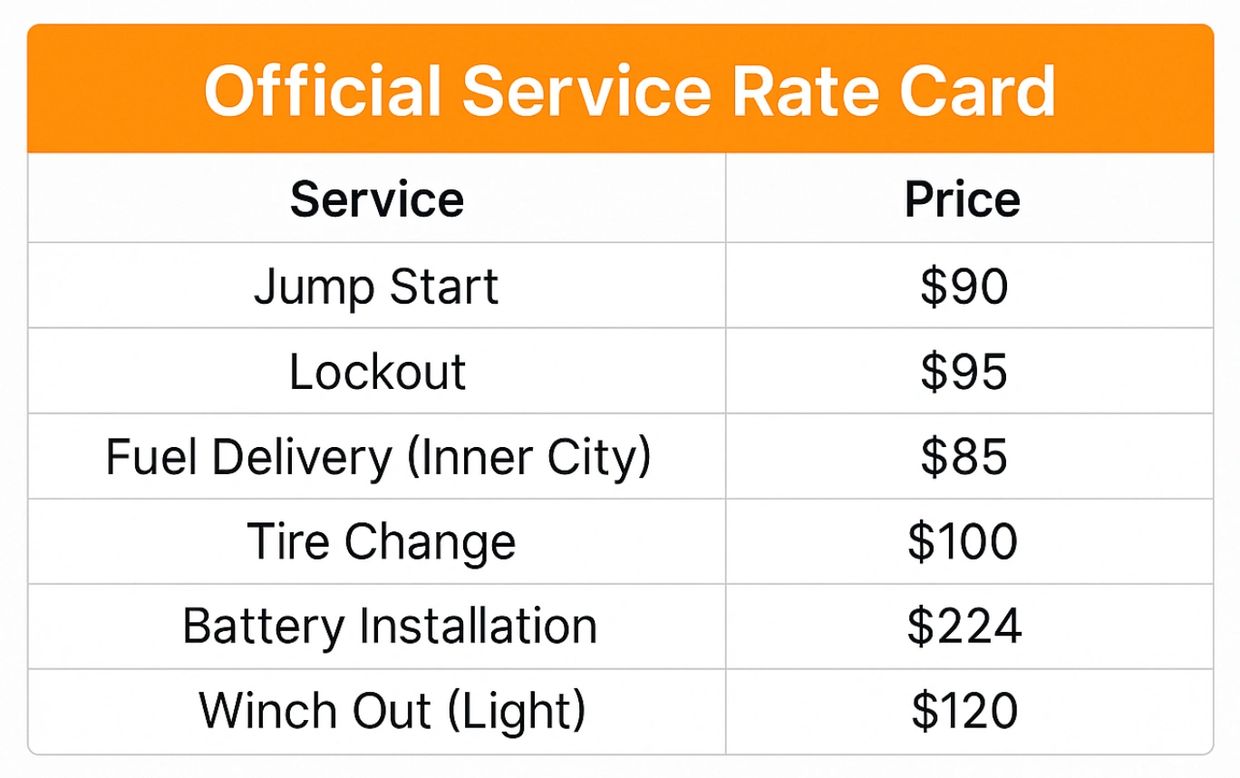 • After-Hours Service: Premium rates may apply for late-night or holiday assistance.